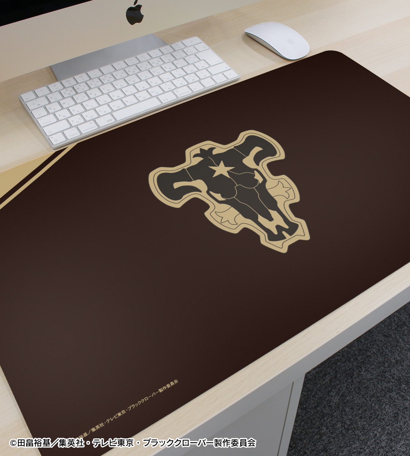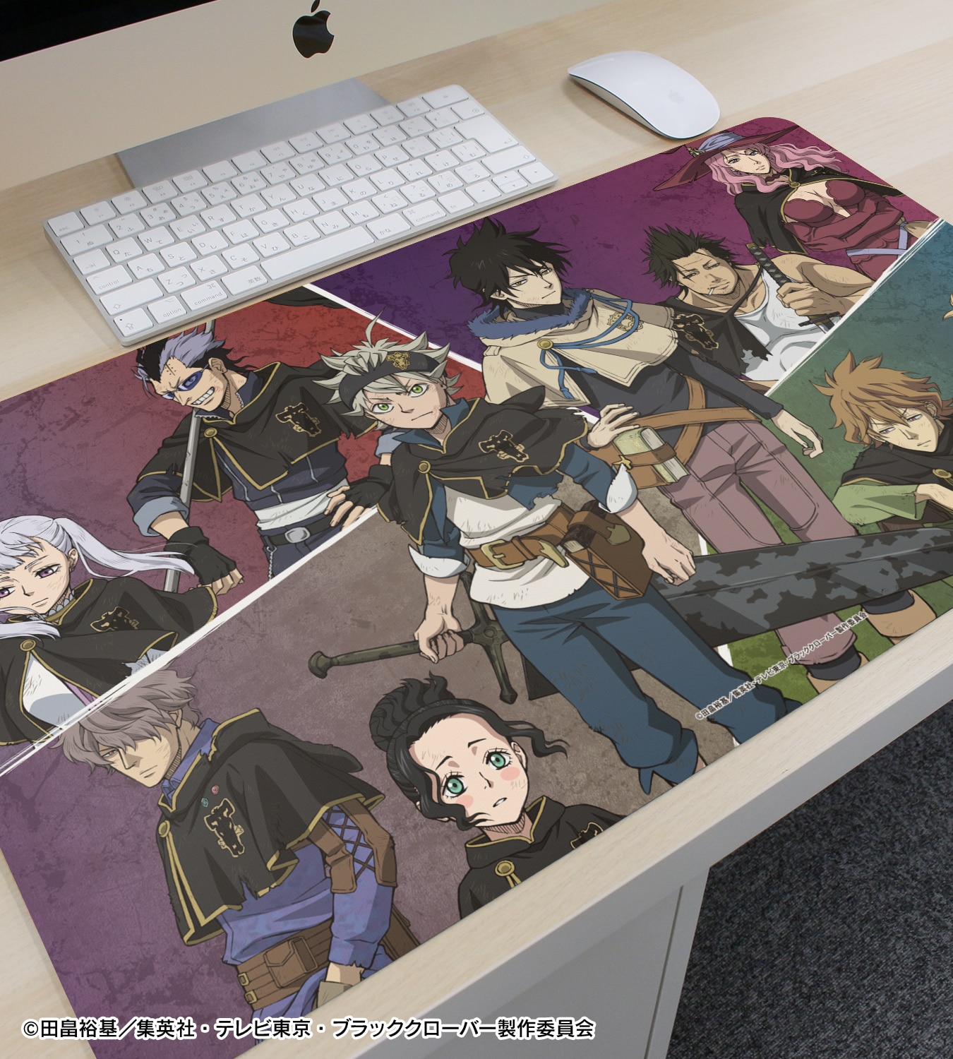「黒の暴牛」、「金色の夜明け」の団章、第1期メインビジュアルをマルチデスクマットに仕上げました。